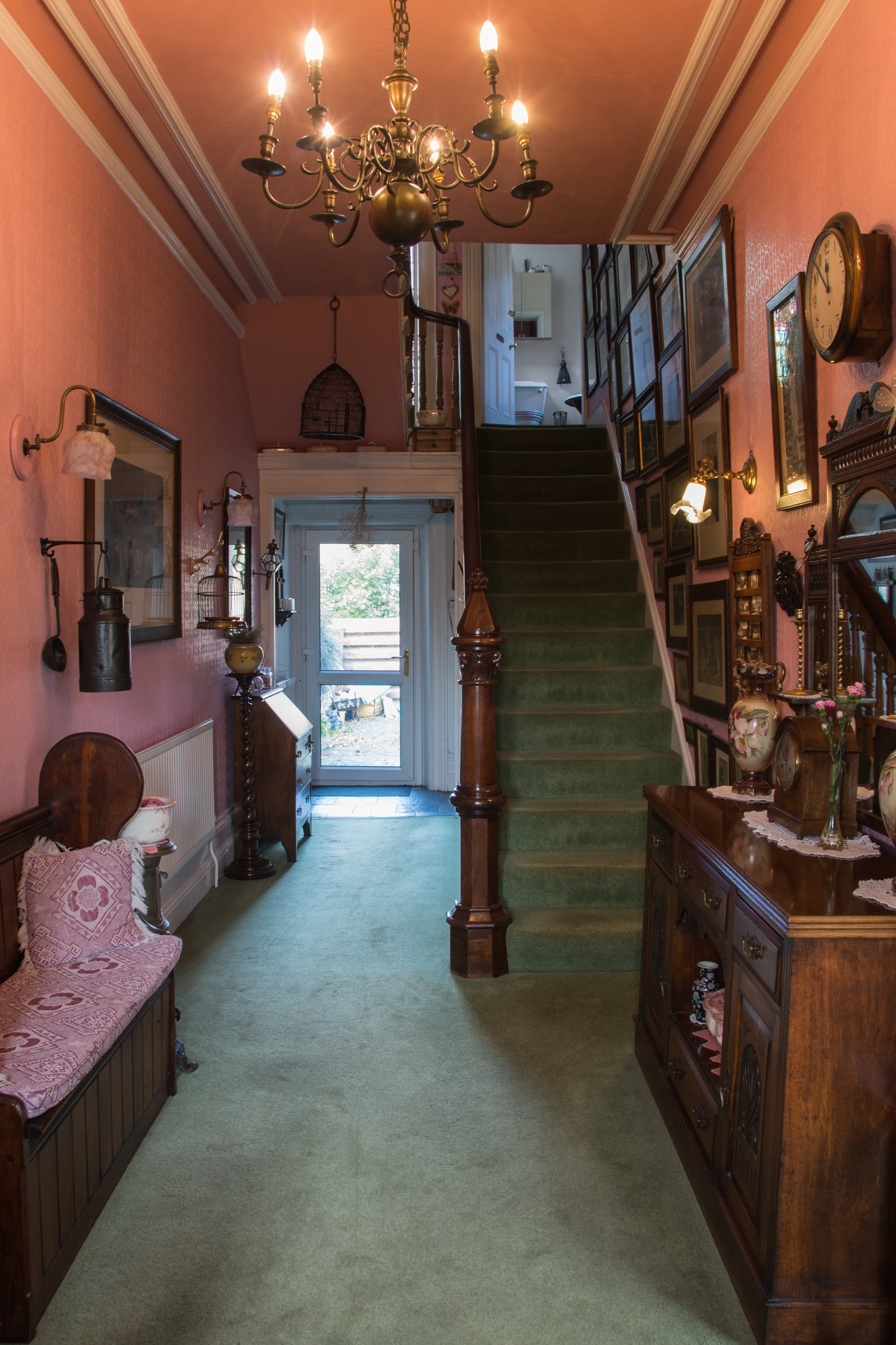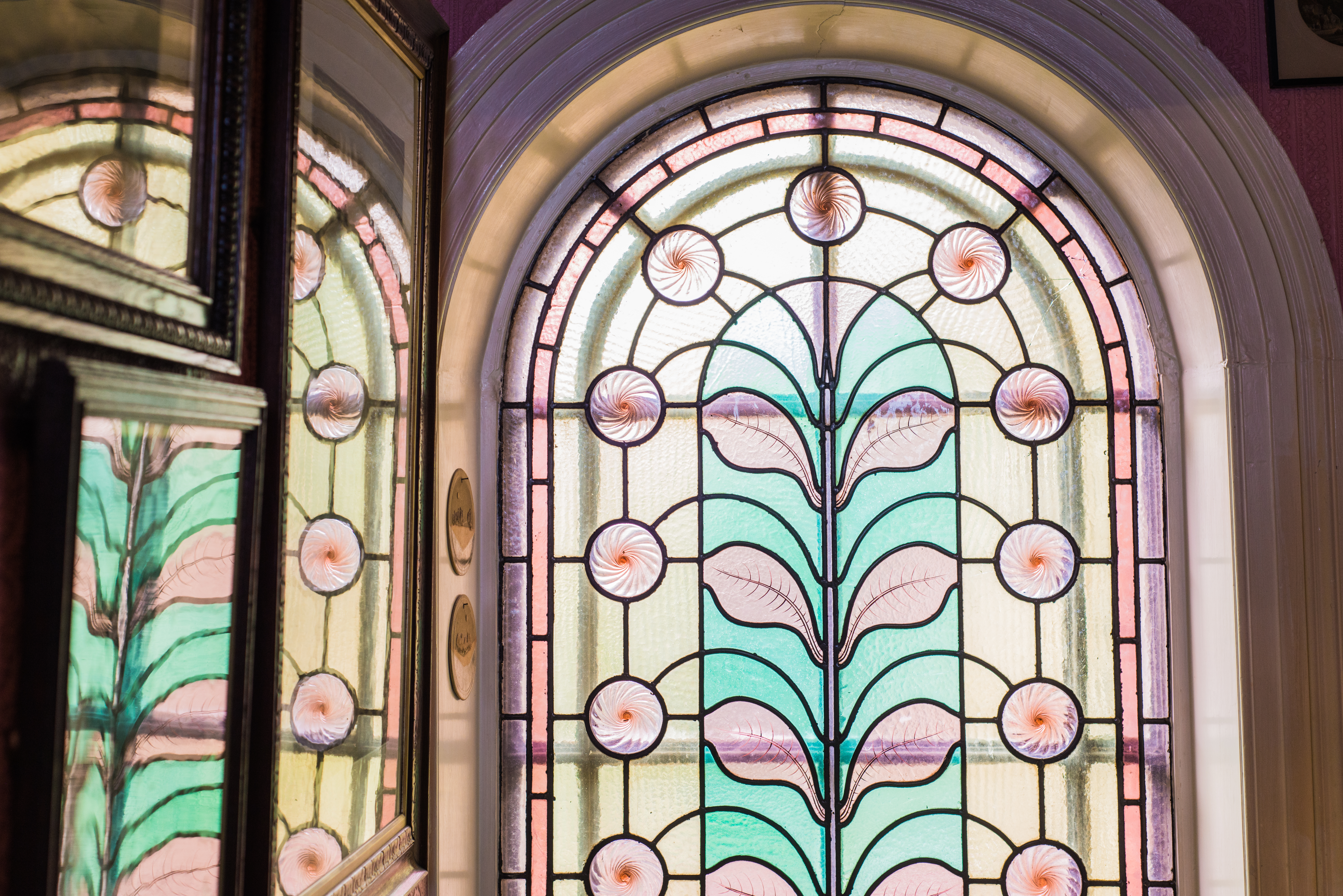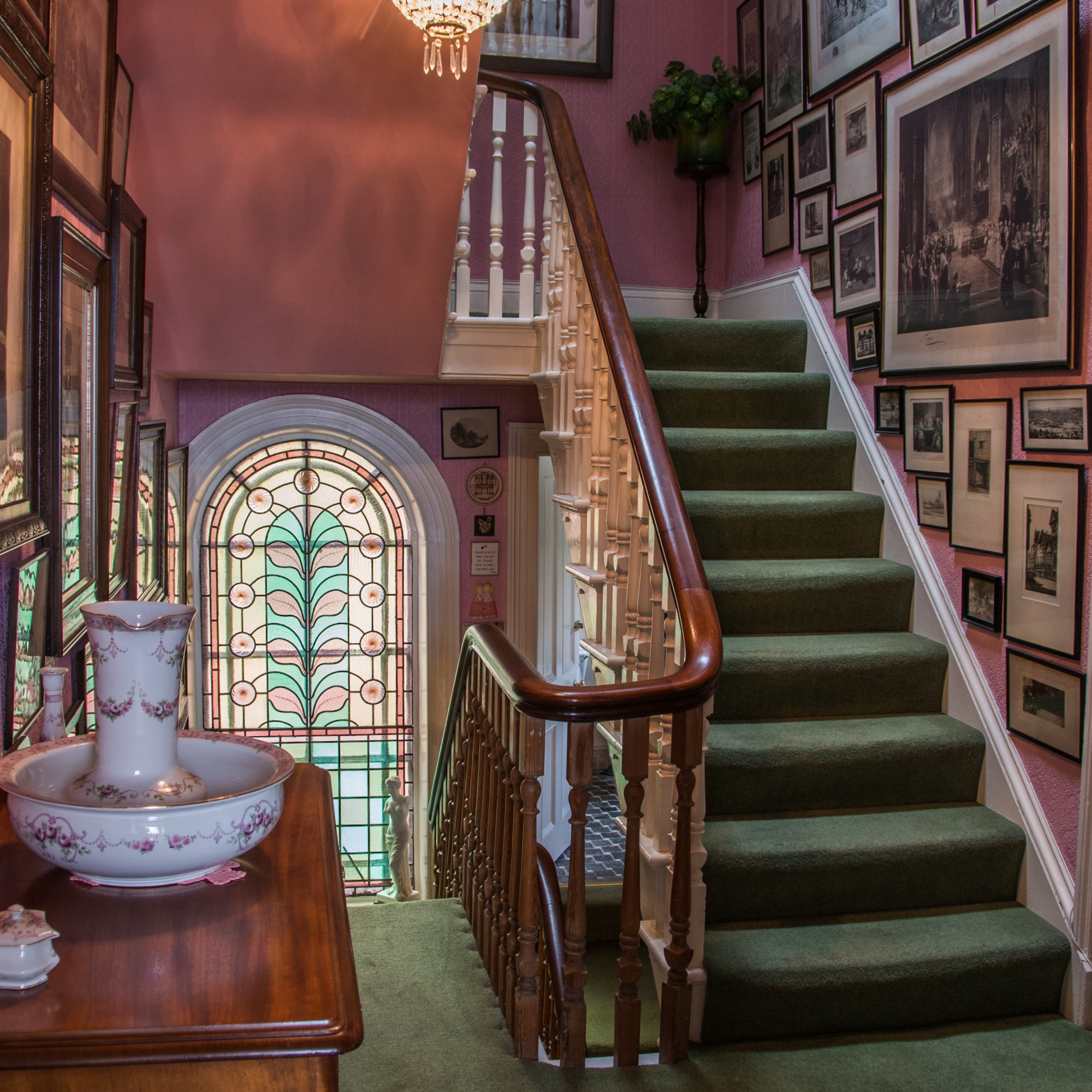 The first floor landing features a beautiful original Victorian stained glass window, which illuminates the space with a soft palette of colours.