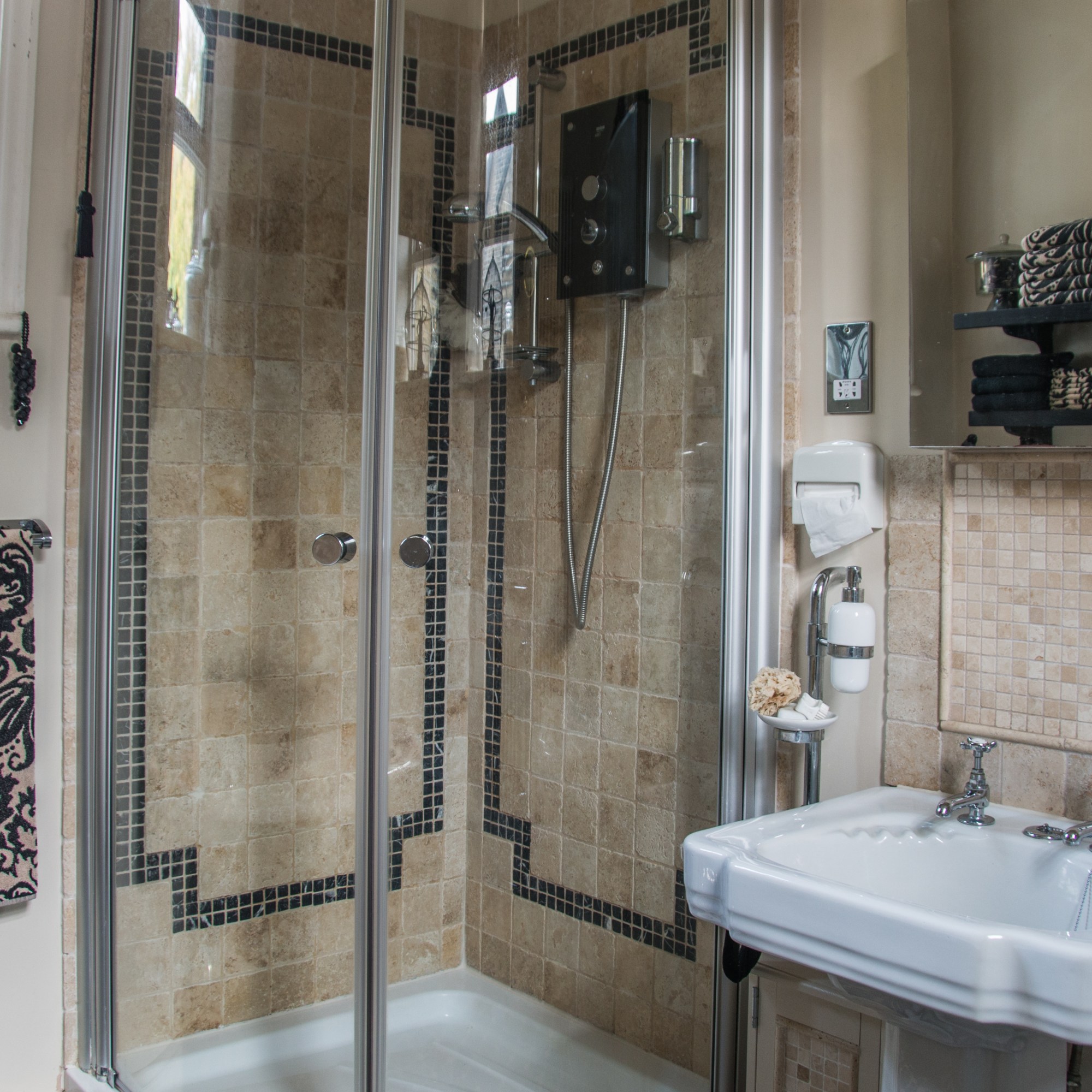 In this double bedded room is a kneehole desk by the window, creating a perfect light work space. The wardrobes provide plenty hanging/storage space along with personal ironing facilities. It also has a pleasant en-suite shower room.